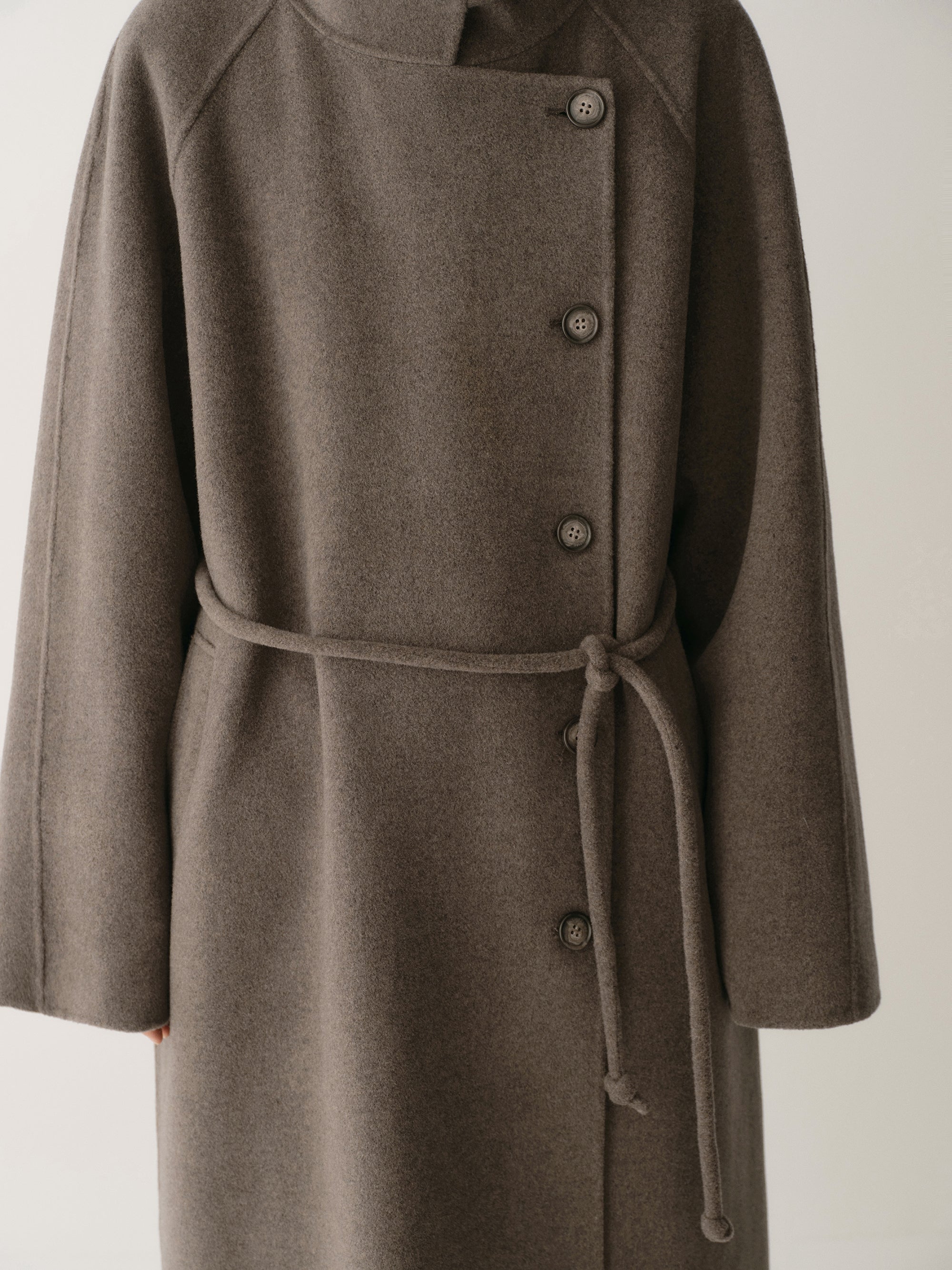 Cord-belt Asymmetric Long Coat